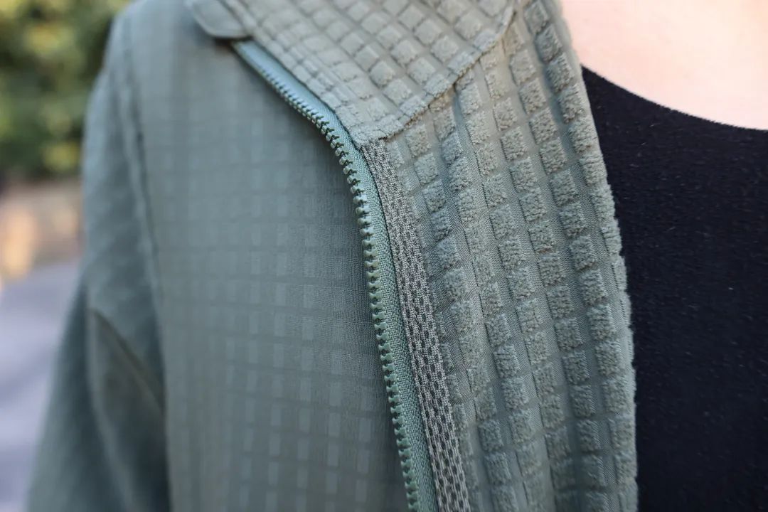 輕量抓絨面料,泛應(yīng)用于戶外運(yùn)動(dòng)服裝中,具有出色的透氣、保暖和快干性能。可將汗水迅速向外排放,保持身體干爽。同時(shí),該面料具有彈力,輕盈柔軟、耐磨損等特點(diǎn),穿著舒適并且非常耐用。其抓絨的工藝增加了纖維縫隙,鎖住體溫,從而形成保溫的效果,即使在潮濕的環(huán)境下,也能保持較好的保暖性。